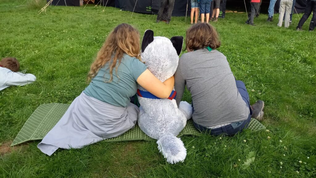 Fast alle von uns sind auf einen zweitägigen Haik gegangen wo wir einiges erlebt haben: Der von uns auf der Karte ausgewählte Weg, existierte leider nicht, dadurch wurden aus 15 gleichmal 18 Kilometer, was auch unsere jüngsten tapfer gemeistert haben, trotz das manche viel zu wenig Wasser dabei hatten. Keine Sorge, es ist niemand verdurstet. Endlich bei unserem Übernachtungsplatz angekommen haben wir uns ausgeruht, und einmal wieder zu Kräften gekommen war das Highlight auf jeden Fall das Eis! Da konnten plötzlich alle, die „nie wieder aufstehen können“ wieder laufen. Übernachtet haben wir in einem Pfarrgarten am Fluss unter den Sternen. Auch wenn manche ihren Schlafsack mit den Nacktschnecken teilen mussten… auf dem Rückweg wurde das Gepäck dann den Kräften entsprechend verteilt. Wieder zurück haben wir im Sonnenuntergang Aufnahmen und Übertritte gefeiert. Beim Großspiel haben unsere Jungpfadis und frisch gebackenen Pfadis das erste mal Gruppen angeleitet und sehr bunte Zaubertränke gebraut. Die ganze Zeit war Eddie der Polarfuchs, das Maskottchen der ältesten Sippe, mit dabei und wurde intensiv gekuschelt.
